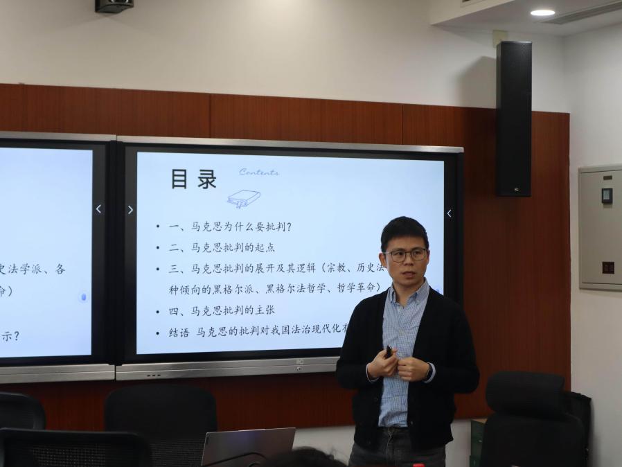 复旦大学马克思主义研究院助理研究员刘超对该报告进行了评议。评议人充分肯定了报告的思想启发性,并提出了若干值得深入思考的问题。其一,应当避免将批判视野局限于单一维度。其二,法哲学批判不应仅停留于观念层面,还应关注法条与现实执行之间的不对称性。其三,马克思倡导的“哲学现实化”,是否完全等同于“法哲学的现实化”。其四,马克思主义法哲学应以何种形态呈现。